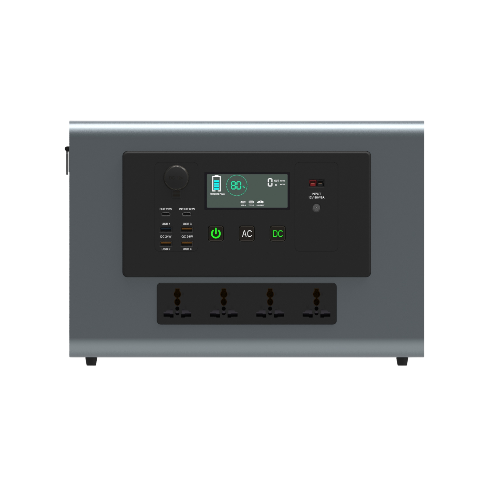 AC Output220V~50Hz, 500W Continuous, 1000W Peak220V~50Hz, 1000W Continuous, 2000W Peak220V~50Hz, 1200W Continuous, 2400W Peak220V~50Hz, 2000W Continuous, 4000W Peak